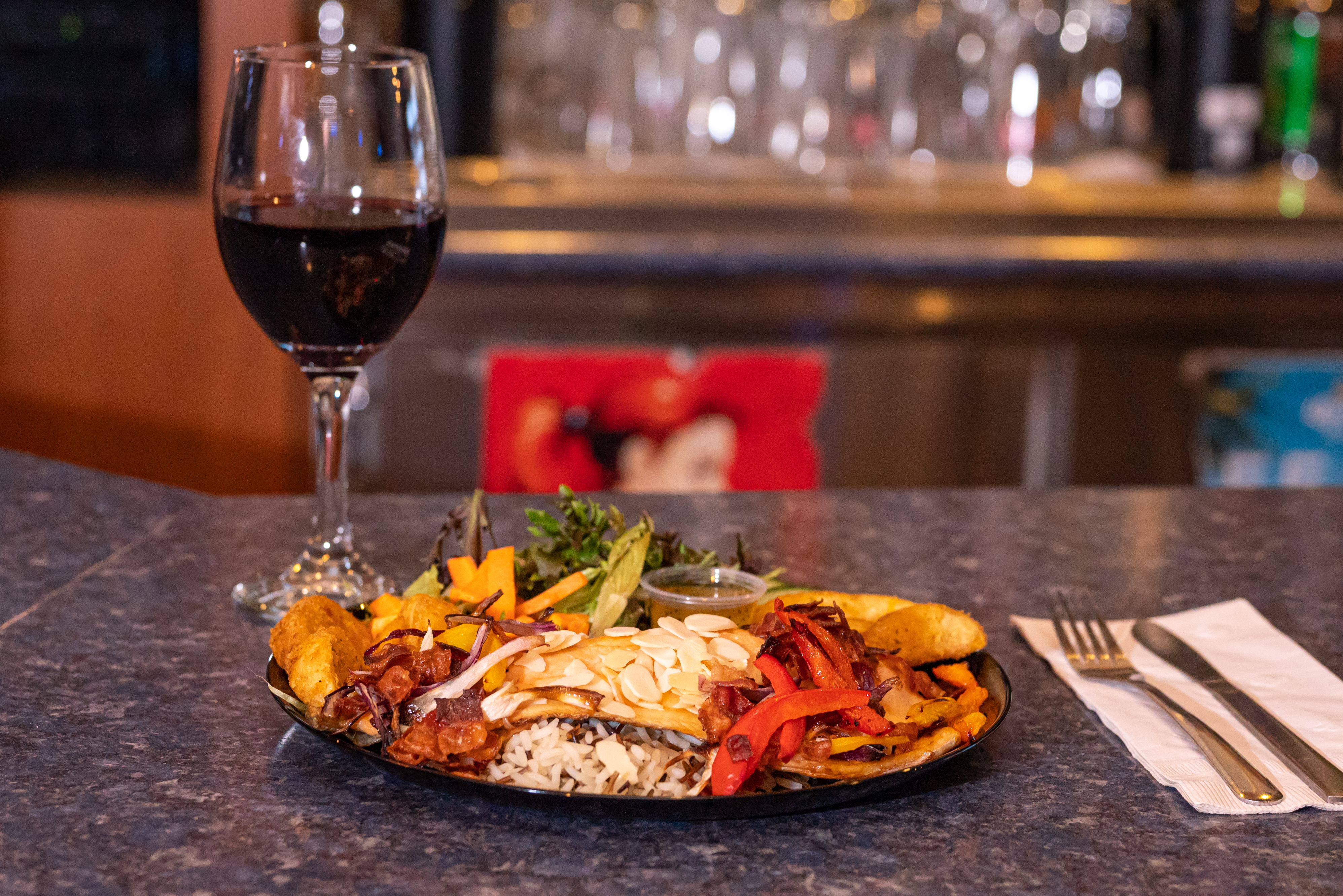 L'équipe du Resto-bar a le plaisir de vous proposer un menu varié. Notre steak mariné aux poivres ainsi que nos pizzas sauront vous plaire! De plus, une large sélection de vins d'importation privée est disponible pour agrémenter votre repas.