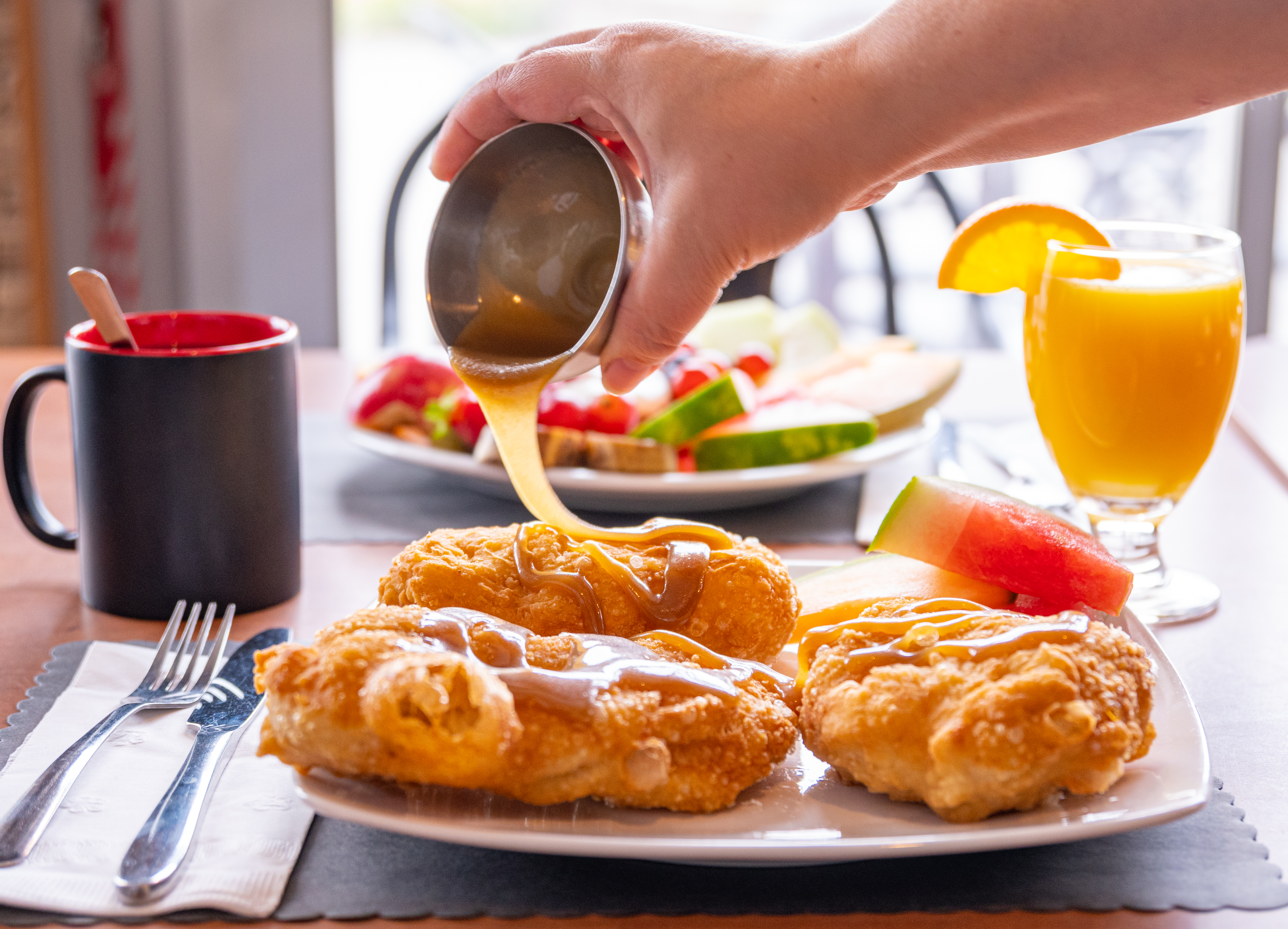 Plutôt sucré ou salé ? Faites-vous plaisir ! Nos déjeuners sont disponibles à la carte de 7h00 à 14h00 du lundi au vendredi et à partir de 7h30 la fin de semaine.