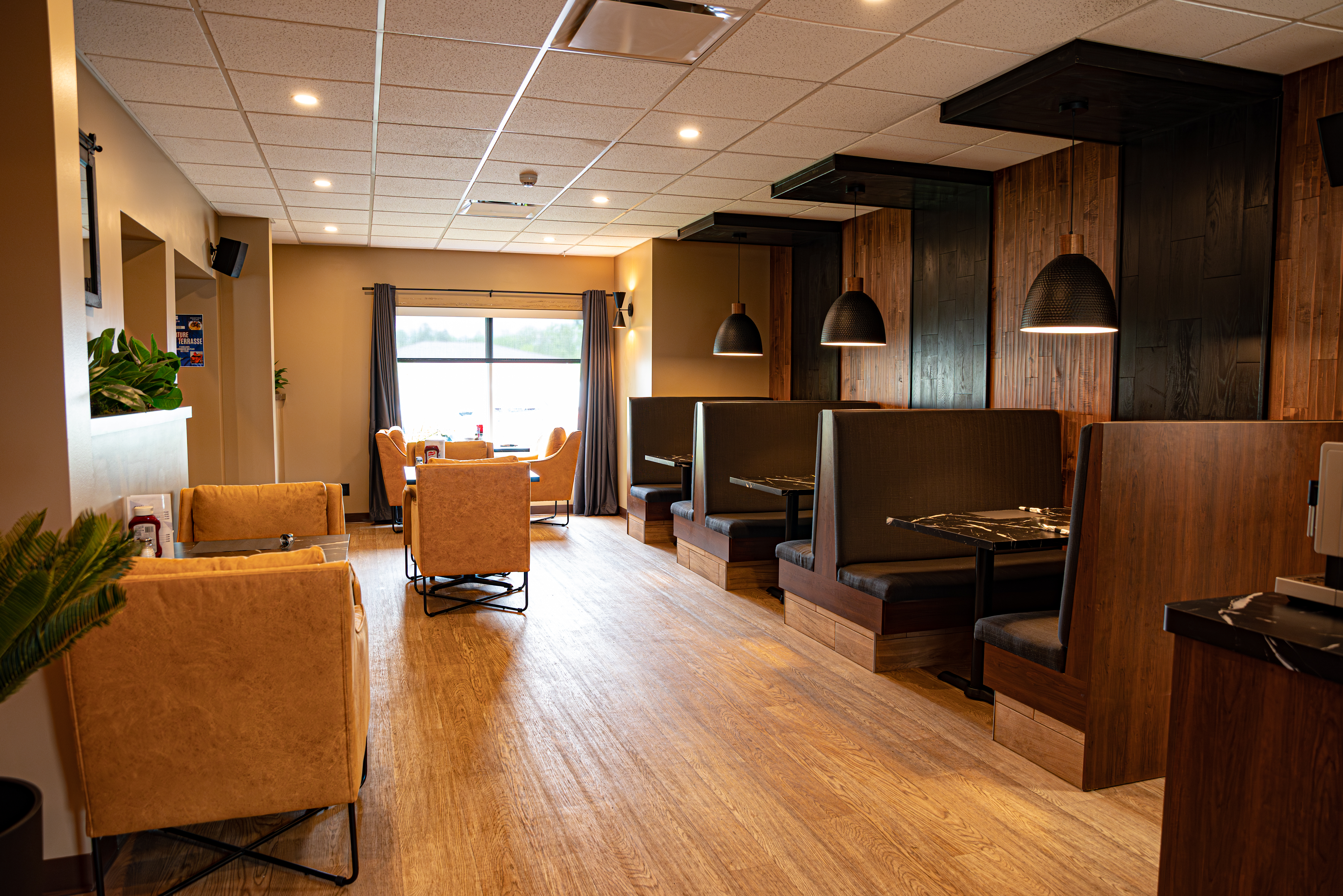 Le décor moderne et l'ambiance décontractée font du Resto-bar l'Ambassadeur un endroit parfait pour vous divertir entre amis. Notre personnel dévoué vous propose un excellent choix de menu ainsi que nos spécialités qui sauront combler vos attentes.